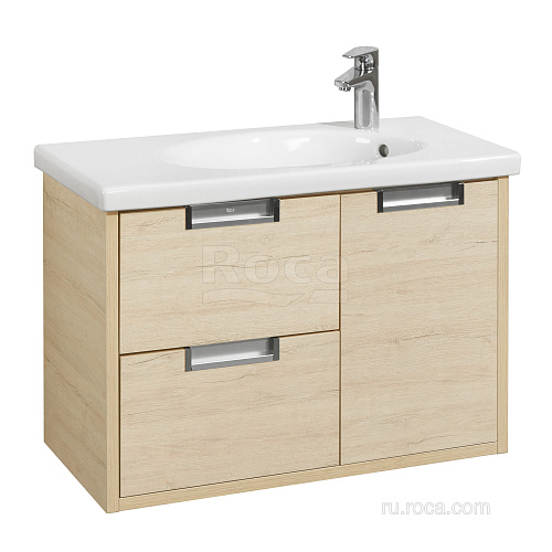 Тумба для раковины Etna в современном стиле от испанского бренда Roca, выполненная из влагостойкой высококачественной ЛДСП с ящиками и распашной дверцей с доводчиками.