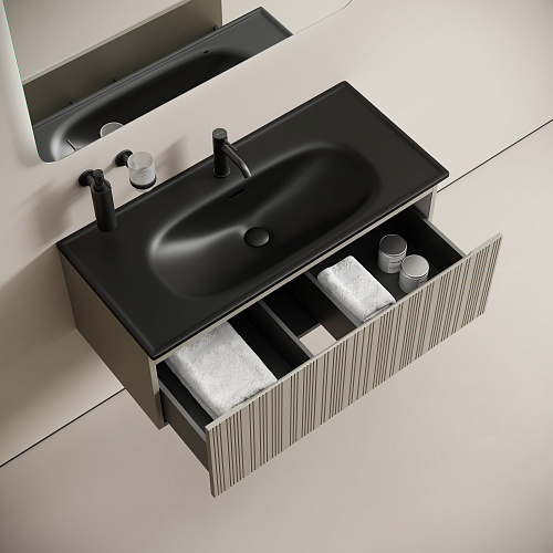 Тумба с одним выдвижным ящиком с доводчиками скрытого монтажа, Выполнена из МДФ с покрытием ПВХ плёнка , комплектующие FIRMAX. Цвет серая платина