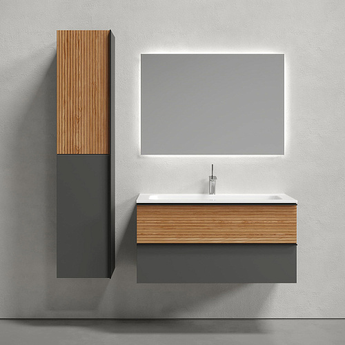 Тумба Sancos DL100GR Delta под раковину 99.5х44.5 см, подвесная, дуб красный/графит