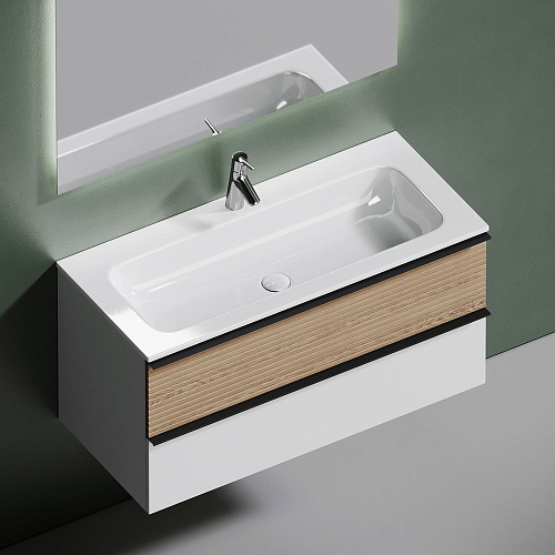 Тумба Sancos DL100W Delta под раковину 99.5х44.5 см, подвесная, дуб светлый/белый