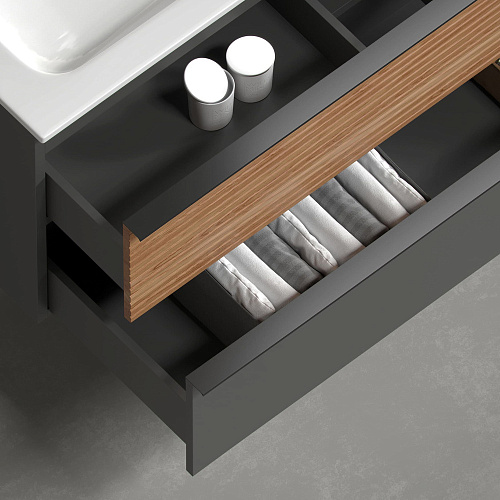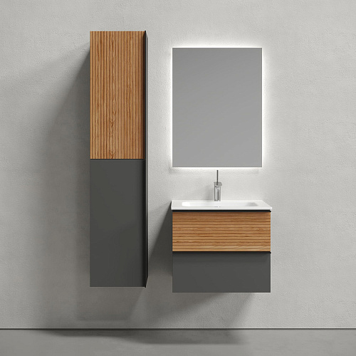 Тумба Sancos DL60GR Delta под раковину 59х44.5 см, подвесная, дуб красный/графит