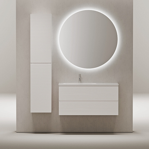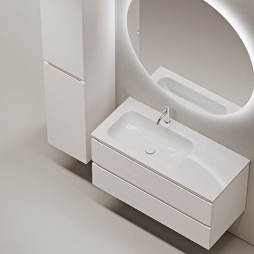 Тумба подвесная с рельефным фасадом левая SANCOS Folk 995х445х500, c двумя ящиками оснащенными доводчиками скрытого монтажа с системой плавного закрывания, цвет Bianco, арт.FL100LW