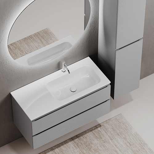 Тумба подвесная с рельефным фасадом правая SANCOS Folk 995х445х500, c двумя ящиками оснащенными доводчиками скрытого монтажа с системой плавного закрывания, цвет Ergraut soft, арт.FL100RES