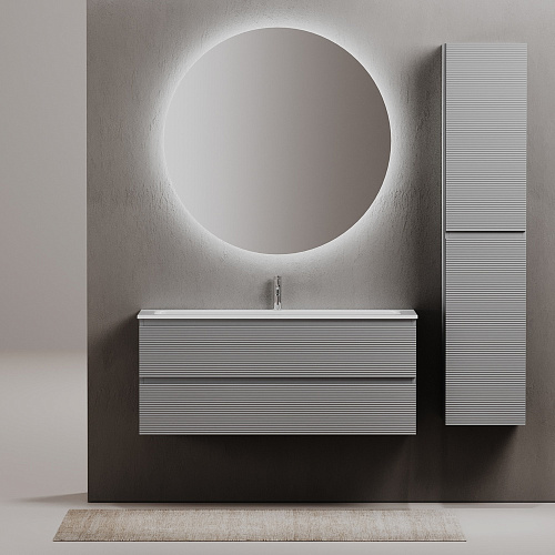 Тумба подвесная с рельефным фасадом SANCOS Folk 1195х445х500, c двумя ящиками оснащенными доводчиками скрытого монтажа с системой плавного закрывания, цвет Ergraut soft, арт.FL120ES