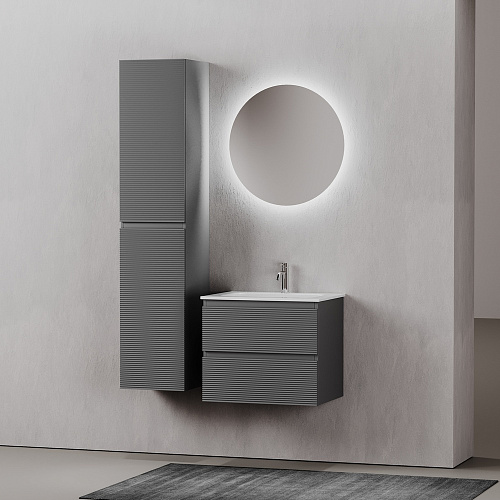 Тумба подвесная с рельефным фасадом SANCOS Folk 590х445х500, c двумя ящиками оснащенными доводчиками скрытого монтажа с системой плавного закрывания, цвет Grey soft, арт.FL60GS