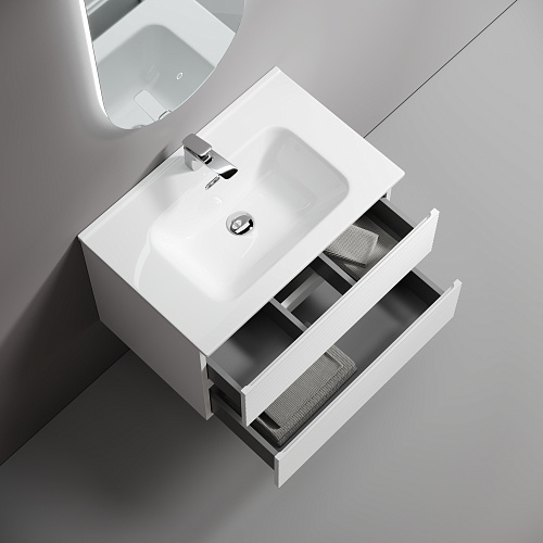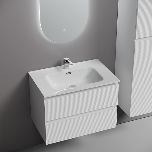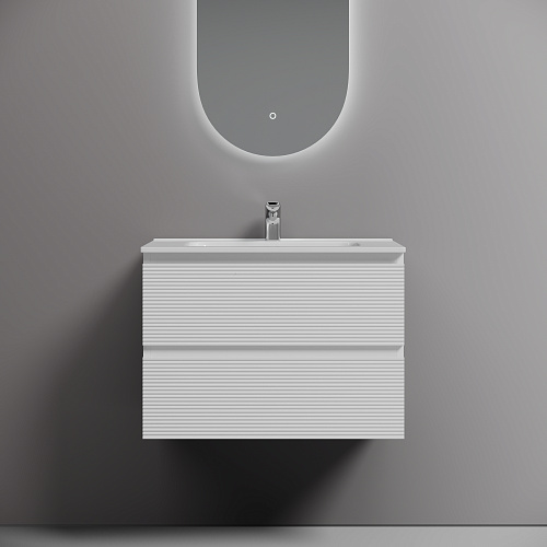 Тумба подвесная с рельефным фасадом SANCOS Folk 690х445х500, c двумя ящиками оснащенными доводчиками скрытого монтажа с системой плавного закрывания, цвет Bianco, арт.FL60W