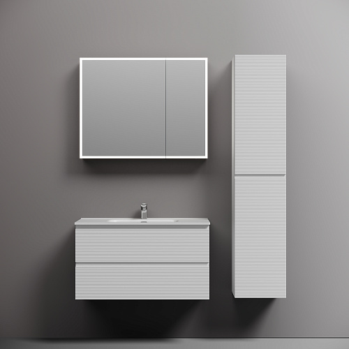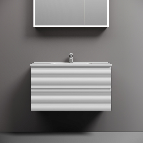Тумба подвесная с рельефным фасадом SANCOS Folk 890х445х500, c двумя ящиками оснащенными доводчиками скрытого монтажа с системой плавного закрывания, цвет Bianco, арт.FL90W