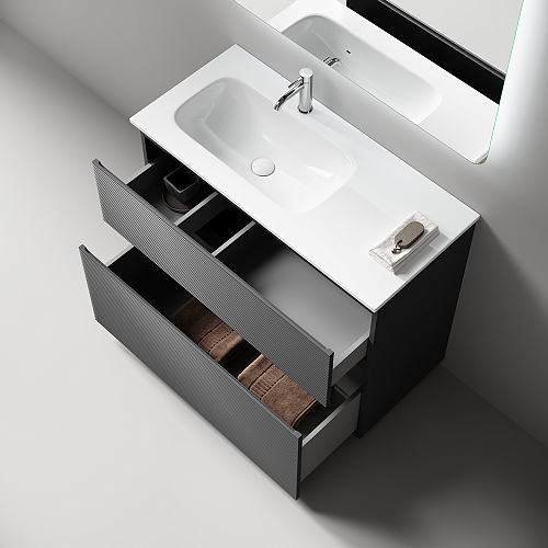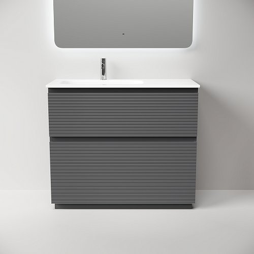 Тумба напольная с двумя выдвижными ящиками с доводчиками скрытого монтажа Каркас и фасад тумбы выполнен из МДФ, покрытие ПВХ - пленка Размер 995х445х850, левая В комплекте регулируемые ножки для невелирования неровностей пола до 10 мм На изображении тумба Folk Floor представлена с зеркалом RAY, смесителем из коллекции ETNA и раковиной Grace CN7014