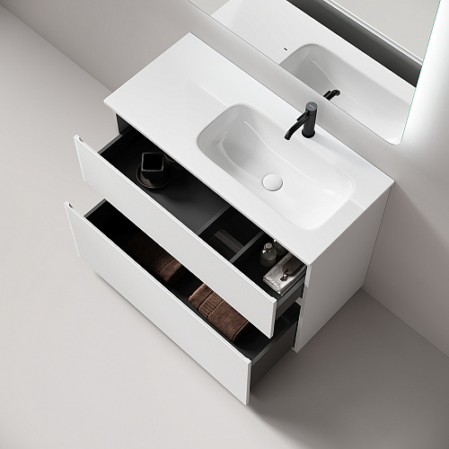Тумба напольная с двумя выдвижными ящиками с доводчиками скрытого монтажа Каркас и фасад тумбы выполнен из МДФ, покрытие ПВХ - пленка Размер 995х445х850, правая В комплекте регулируемые ножки для невелирования неровностей пола до 10 мм На изображении тумба Folk Floor представлена с зеркалом RAY, смесителем из коллекции ETNA и раковиной Grace CN7014