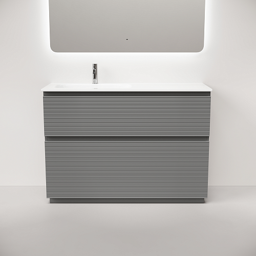 Тумба напольная с двумя выдвижными ящиками с доводчиками скрытого монтажа Каркас и фасад тумбы выполнен из МДФ, покрытие ПВХ - пленка Размер 1190х445х850, левая В комплекте регулируемые ножки для невелирования неровностей пола до 10 мм На изображении тумба Folk Floor представлена с зеркалом RAY, смесителем из коллекции ETNA и раковинами Grace CN7020