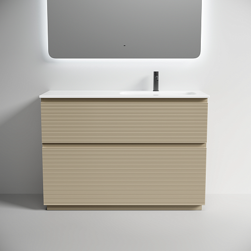 Тумба напольная с двумя выдвижными ящиками с доводчиками скрытого монтажа Каркас и фасад тумбы выполнен из МДФ, покрытие ПВХ - пленка Размер 1190х445х850, правая В комплекте регулируемые ножки для невелирования неровностей пола до 10 мм На изображении тумба Folk Floor представлена с зеркалом RAY, смесителем из коллекции ETNA и раковинами Grace CN7021