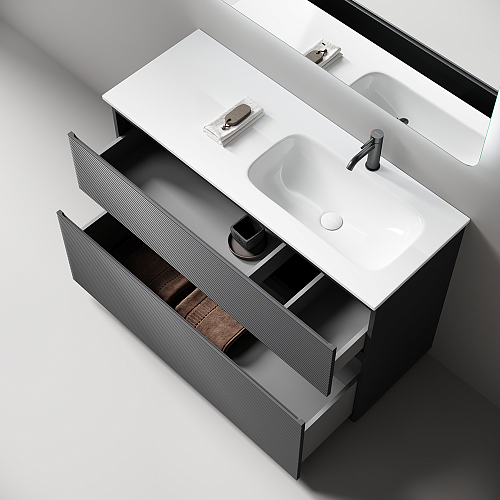 Тумба напольная с двумя выдвижными ящиками с доводчиками скрытого монтажа Каркас и фасад тумбы выполнен из МДФ, покрытие ПВХ - пленка Размер 1190х445х850, правая В комплекте регулируемые ножки для невелирования неровностей пола до 10 мм На изображении тумба Folk Floor представлена с зеркалом RAY, смесителем из коллекции ETNA и раковинами Grace CN7021S