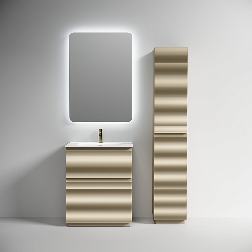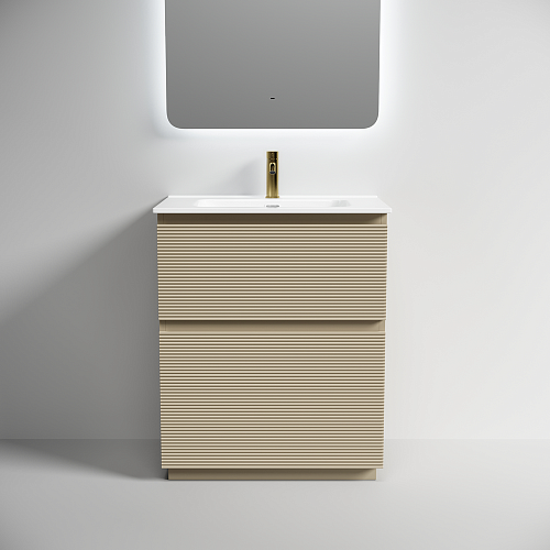 Тумба напольная с двумя выдвижными ящиками с доводчиками скрытого монтажа Каркас и фасад тумбы выполнен из МДФ, покрытие ПВХ - пленка Размер 690х445х850 В комплекте регулируемые ножки для невелирования неровностей пола до 10 мм На изображении тумба Folk Floor представлена с зеркалом RAY, смесителем из коллекции ETNA и раковиной Element CN7007