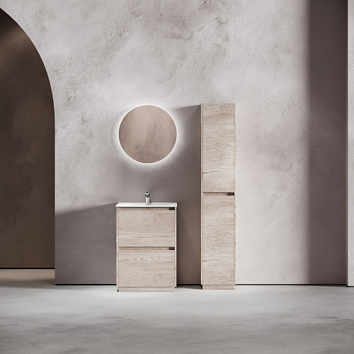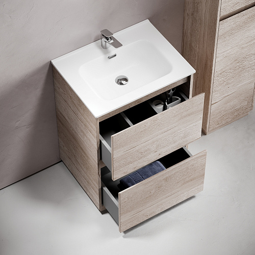 Тумба под раковину SANCOS Libra Floor напольная, 590х450х840 c двумя ящиками оснащенными доводчиками скрытого монтажа с системой Soft close (плавного закрывания), c фрезерованными ручками по всей длине фасада, дуб галифакс натуральный, арт.LB60FEG
