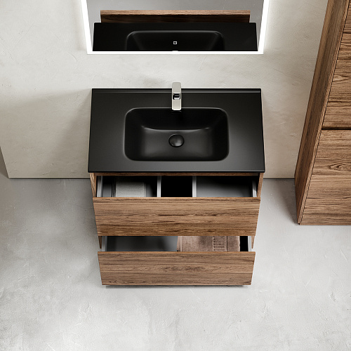 Тумба под раковину SANCOS Libra Floor напольная, 690х450х840 c двумя ящиками оснащенными доводчиками скрытого монтажа с системой Soft close (плавного закрывания), c фрезерованными ручками по всей длине фасада, дуб чарльстон, арт. LB70FECH