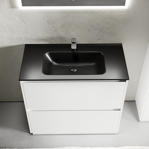 Тумба под раковину SANCOS Libra Floor напольная, 890х450х840 c двумя ящиками оснащенными доводчиками скрытого монтажа с системой Soft close (плавного закрывания), c фрезерованными ручками по всей длине фасада, белый глянец , арт. LB90FW