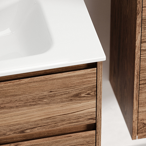 Тумба подвесная SANCOS Libra 690х450х500 c двумя ящиками оснащенными доводчиками скрытого монтажа с системой Soft close (плавного закрывания), c фрезерованными ручками по всей длине фасада, дуб чарльстон, арт. LB70ECH