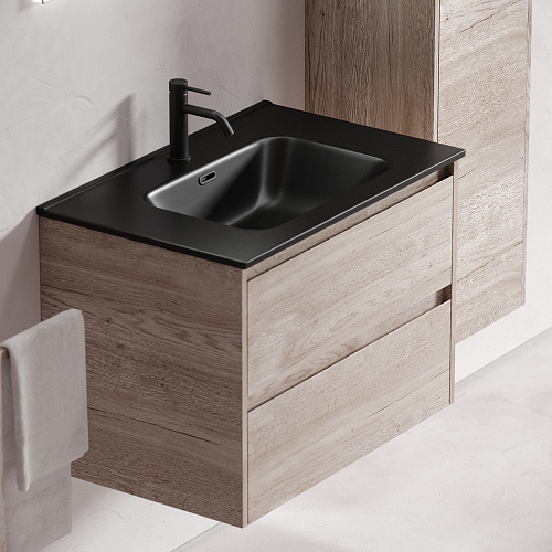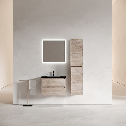 Тумба подвесная SANCOS Libra 690х450х500 c двумя ящиками оснащенными доводчиками скрытого монтажа с системой Soft close (плавного закрывания), c фрезерованными ручками по всей длине фасада, дуб галифакс натуральный, арт. LB70EG