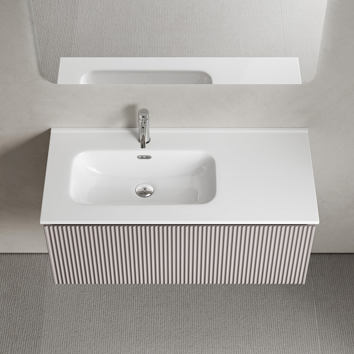 Тумба подвесная SANCOS Snob R 1.0 995х445х406, c одним ящиком оснащенным доводчиками скрытого монтажа с системой Soft close (плавного закрывания), Doha Soft , арт.SNR1.0100LSM