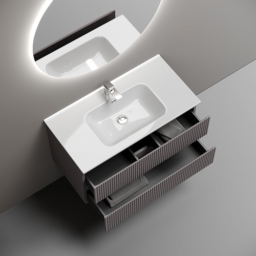 Тумба подвесная SANCOS Snob R 890х445х500, c двумя ящиками оснащенными доводчиками скрытого монтажа с системой Soft close (плавного закрывания) , Doha Soft, арт.SNR90SM