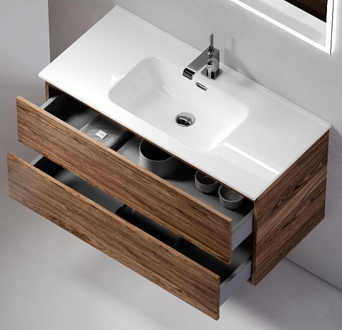 Тумба подвесная SANCOS Urban 990х450х550 c двумя ящиками оснащенными доводчиками скрытого монтажа с системой Soft close (плавного закрывания), c ручкой Gola по всей длине тумбы, дуб чарльстон, арт. UR100ECH