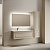 Тумба с одним выдвижным ящиком и с доводчиками скрытого монтажа Выполнена из МДФ с покрытием ПВХ плёнка Комплектующие FIRMAX Цвет beige soft На изображении мебель Snob R представлена с зеркалом SQUARE 120 (SQ120 и смесителем из коллекции LINN (SC9019CH), раковиной Grace CN7020