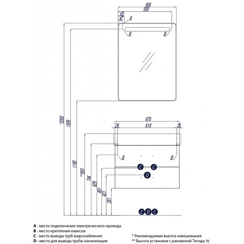 Состав комплекта: Тумба Америна 70 1A137601AM010 Умывальник Тигода 70 1WH302083
