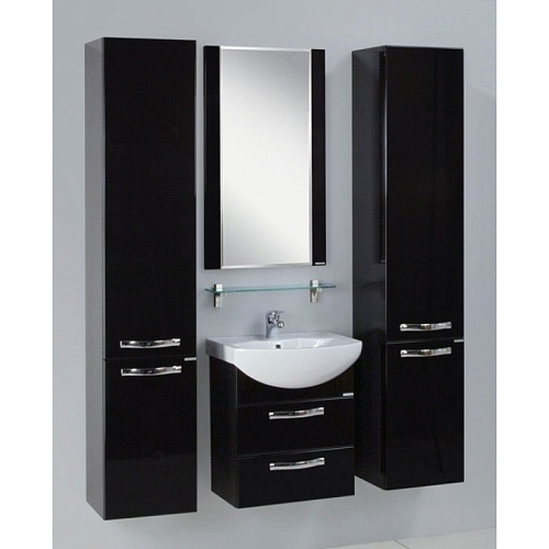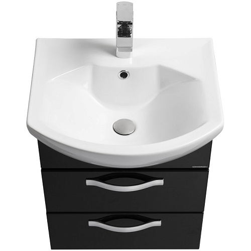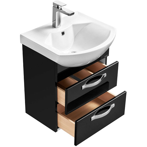 Состав комплекта: Тумба-умывальник подвесная Ария 50 М чёрный глянец 1A140001AA950 Раковина Смайл-50 1WH207781