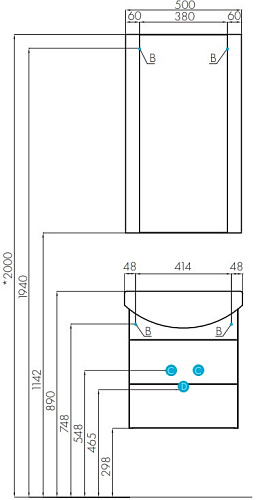 Оснащение Ручки – 2, ящики в декоративной отделке - 2, усиленные навесы - 2, раковина