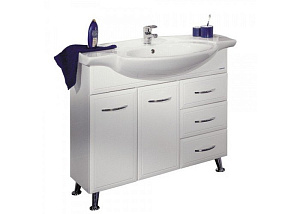 Эта модель разработана специально для обладателей большой ванной комнаты. В тумбе справа расположены три ящика, в центре за распашным фасадом – регулируемая по высоте полка, а слева – вместительная бельевая корзина. Открытые полочки на зеркале и удобный шкафчик позволят разместить все мелочи, которые всегда должны быть под рукой. В коллекцию так же входит функциональный шкаф-колонна, который выпускается в двух вариантах – в одном случае вверху и внизу расположены ниши с регулируемыми по высоте полками, а в другом – снизу вместо полок установлена бельевая корзина. В обоих вариантах распашные фасады могут быть самостоятельно установлены как на левую, так и на правую стенки шкафа.     Цвет: белый,    Размер (ШxВxГ, мм): 940x820x295,    Комплектация: полка – 1, ручка – 5, ящик – 3, ножка – 4, бельевая корзина – 1, раковина Serel 100,1AX037WBXX000