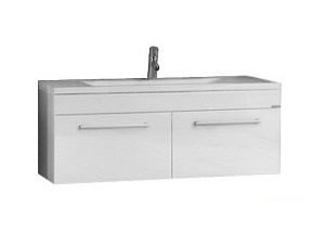 Центром коллекции является тумба. Тумба выпускается с выдвижным ящиком, оснащенным системой плавного закрывания и антискользящим ковриком. Тумба дополнительно оснащена полочками с рейлингом, расположенными над ящиком.