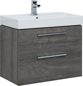 Тумба с раковиной Aquanet Nova 75 имеет фактуру "дуб рошелье". Она выполнена из влагостойкой ламинированной древесно-стружечной плиты и предназначена для использования в помещениях с повышенной влажностью. Тумбу Nova можно установить на стену, тем самым под ним будет свободное пространство, что особенно удобно при уборке помещения. Также можно установить ее на ножки. Для этого их необходимо приобрести дополнительно. Причем, есть выбор: купить белые ножки или черные матовые. В комплекте с тумбой - встраиваемая керамическая раковина «Латина». Эта модель выпускается исключительно для мебели Aquanet. Чаша раковины внутри имеет обтекаемую форму и небольшую платформу с отверстием для смесителя. На нее можно поставить гигиенические принадлежности.