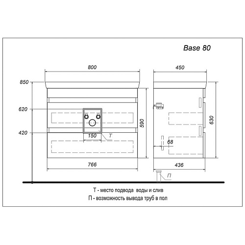 Тумба с раковиной Aquanika Base AQB784352RU114KK купить по доступной цене