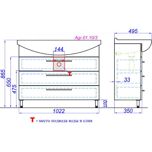 Артикул: Тумба АЛЛЕГРО 105/3 раковиной