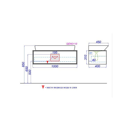Тумба с раковиной Aqwella Genesis GEN0110W+ Esc.09.04.D