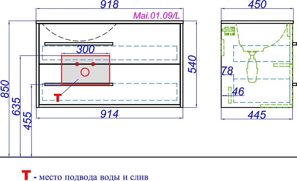 Артикул Тумба Майами 90 левая Mai.01.09/L с раковиной