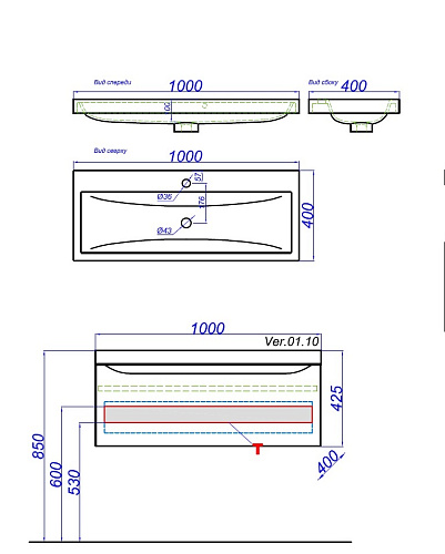 Артикул: Тумба Верона 100 Ver.01.10/W с раковиной