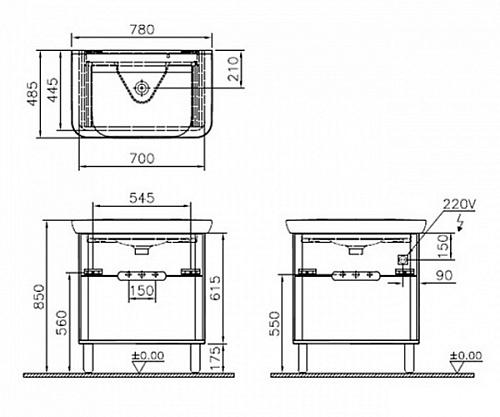 Тумба Vitra 60824 Sento с раковиной 78х49 см, подвесная, с LED подсветкой и датчиком движения, белая
