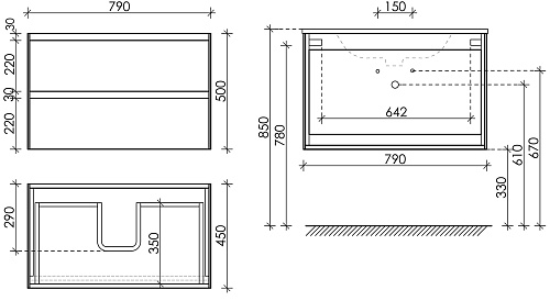 Тумба подвесная SANCOS Cento 790х450х500, c двумя ящиками оснащенными доводчиками скрытого монтажа с системой Soft close (плавного закрывания),карпатская ель, арт. CN80KE