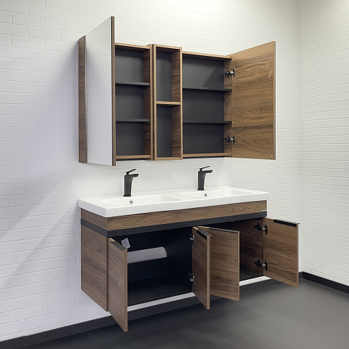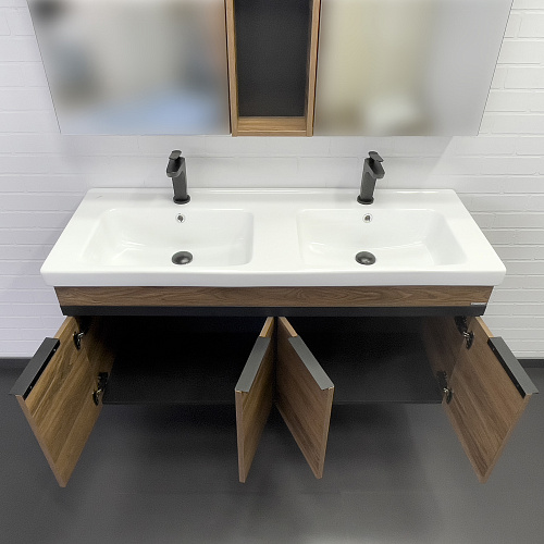Тумба-умывальник Comforty 00-00017178 Дуэт подвесная 125х47 см, дуб темно-коричневый