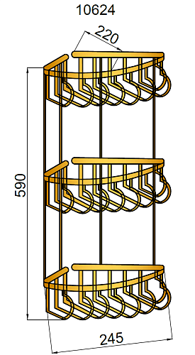 Полка Boheme 10624 Medici угловая, тройная, настенная, металл, бронза