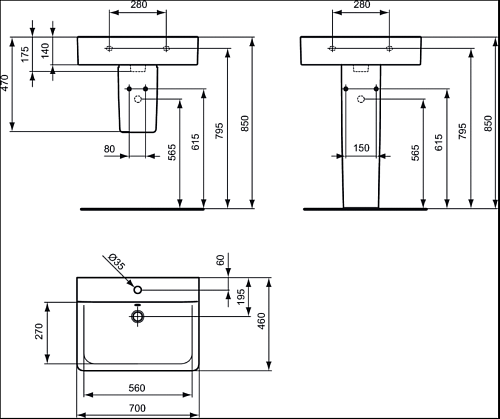 CONNECT Cube Умывальник 70 см, с 1-м отверстием под смеситель, с отверстием перелива, без крепежа. Для монтажа с колонной E797301 /полуколонной E797401 или с мебелью