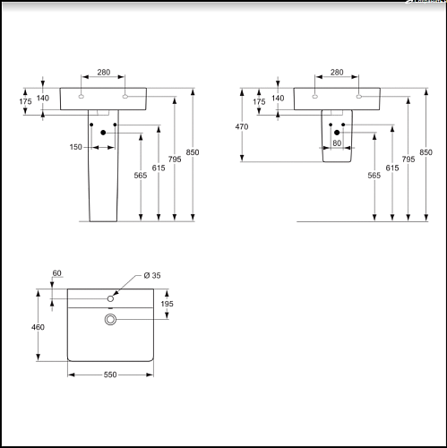 Раковина Ideal Standard E784401 Connect Cube подвесная 55х46 см, с 1-м отверстием под смеситель, Euro White (евробелый)
