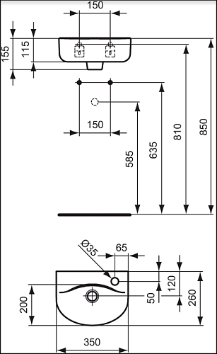 Раковина Ideal Standard E791501 Connect Arc подвесная 35х26 см, с 1-м отверстием под смеситель, Euro White (евробелый)