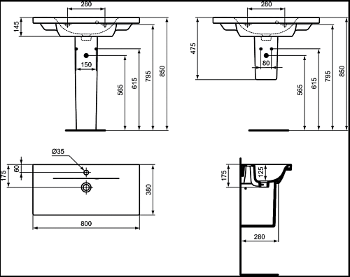 Раковина Ideal Standard E136901 Connect Space подвесная 80х38 см, Euro White (евробелый)