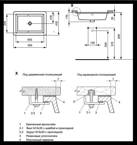 Тип товара Раковина встраиваемая