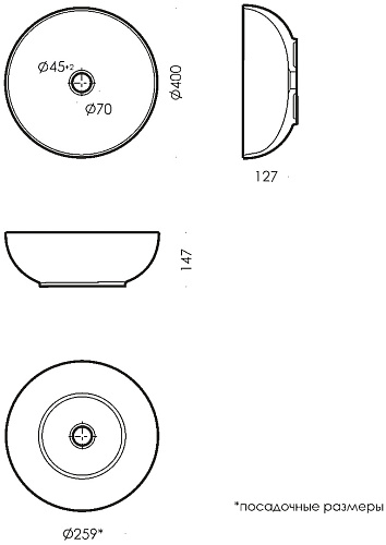 Тип товара Раковина накладная