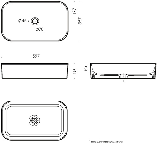 Накладной умывальник с тонкими бортиками. Идеальная глубина накладного умывальника минимизирует брызги. Тонкий бортик освежает и облегчает пространство. 100% фарфор, гарантия 15 лет и универсальность в размещении.