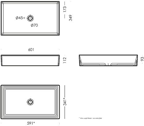 Умывальник Sanita Luxe NOV60SLWB01S Novel Slim накладной 60х35 см, белый (нов. арт. WB.CT/Novel/60-N.Slim/WHT.G/S1)