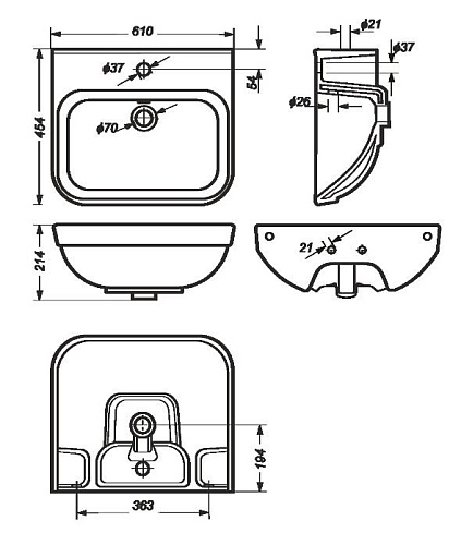 Тип товара Раковина подвесная